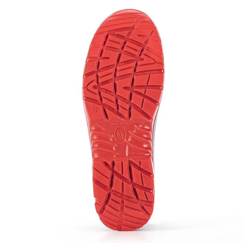 Sola de PU de dupla densidade, sola externa e intermediária com composto ESD. Para uso em contato com equipamentos eletrônicos sensíveis. Leve e confortável, muito versátil, altamente antiderrapante padrão SRC Antislip.