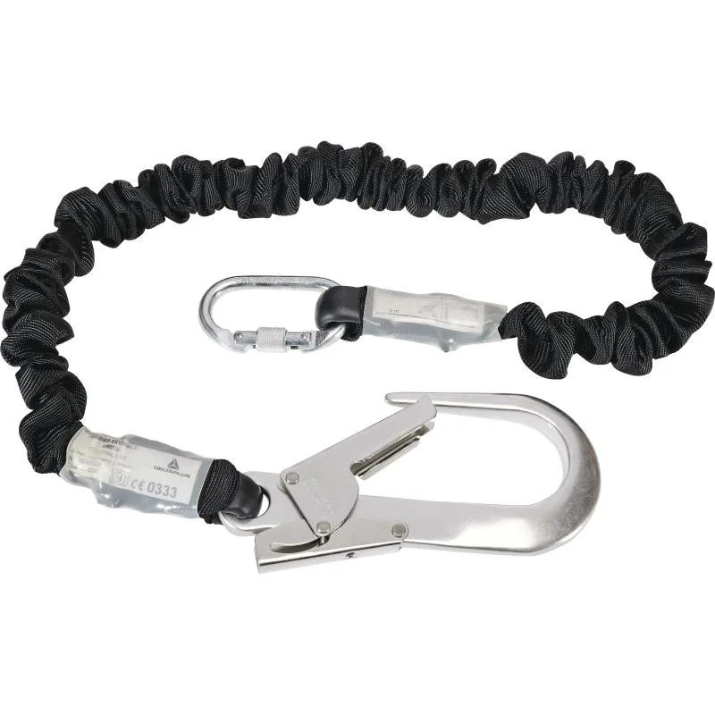Anti-queda do absorvedor de energia extensível em correia tecida com deformação progressiva integrada ao cabo.