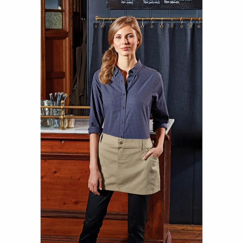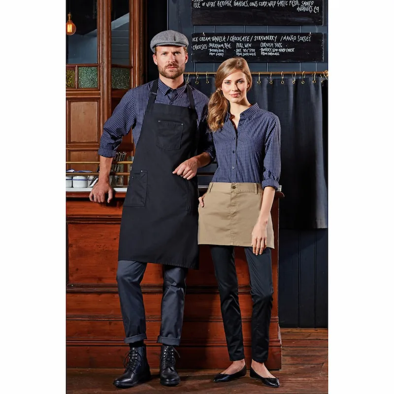 Os acabamentos e os bolsos tipo “chino” irão conferir às suas fardas de serviço um toque de originalidade.