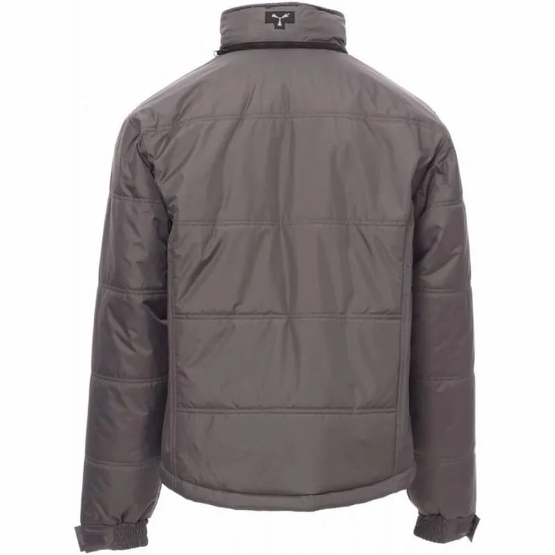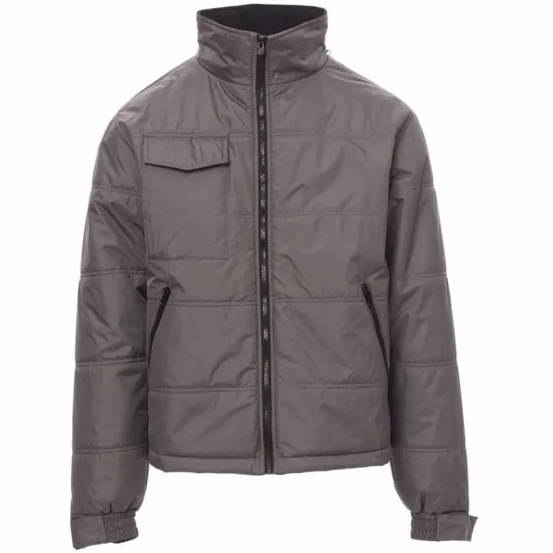 Blusão com pesponto na parte posterior contornada e tecido acolchoado pespontado, acabamento com forro de alta densidade, interior do colarinho em polar.