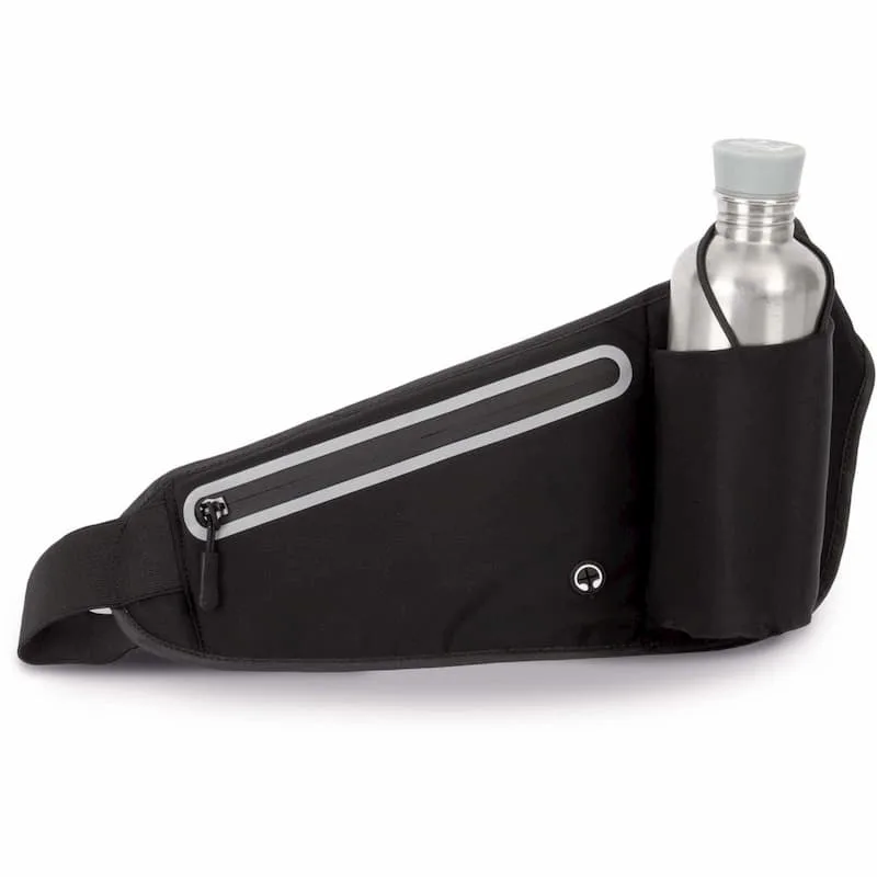 Porta garrafa com capacidade máxima até 750 ml, e elástico para ajuste. Cinto elástico ajustável.