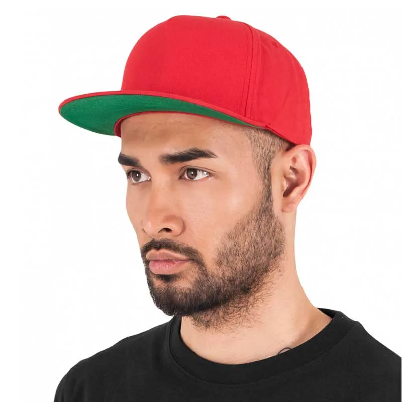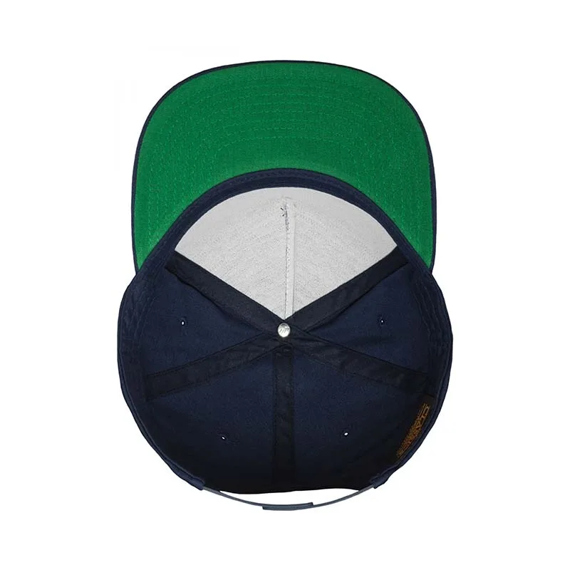 100% algodão. Com uma forma clássica, de sarja robusta, a parte inferior da pala em verde e o fecho snapback a condizer, o boné Classic com 5 painéis Snapback é descontraído e muito autêntico. 5 painéis com zona frontal continua facilita a impressão e o bordado.