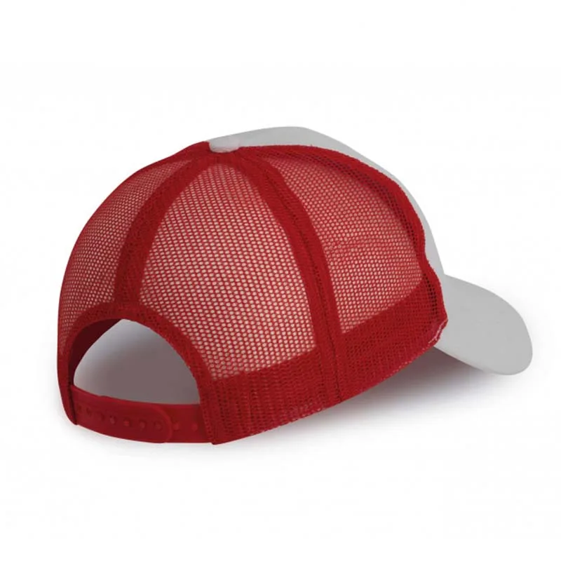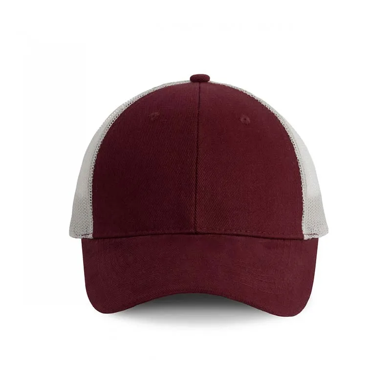Os painéis frontais e pala são em 100% algodão e rede em 100% poliéster.