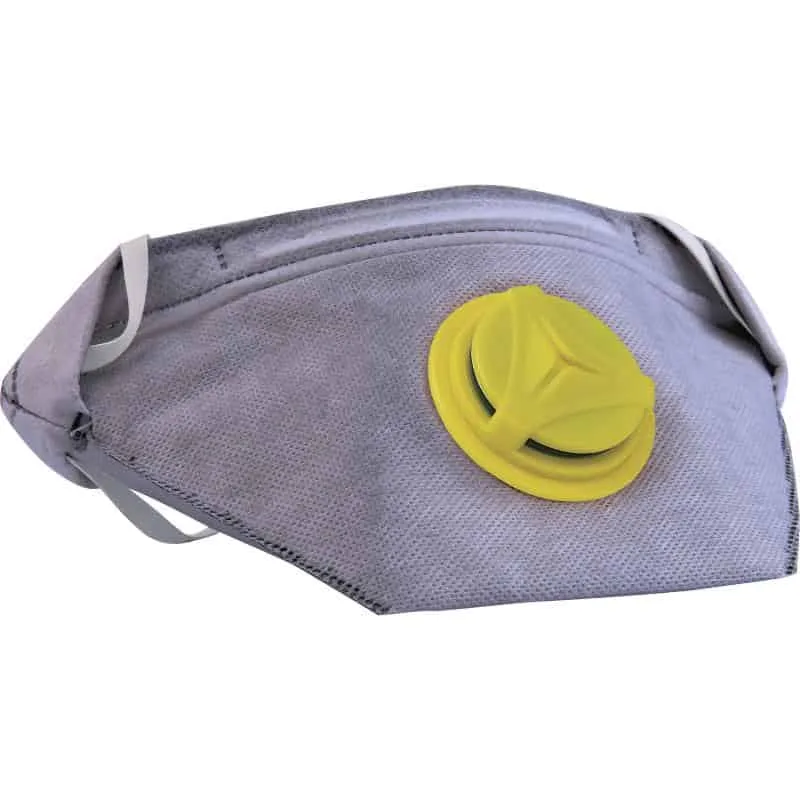 Caixa de 10 peças faciais filtrantes FFP2 vapor orgânico (para concentração < VME) em fibra sintética não tecido impregnada de carvão ativo.