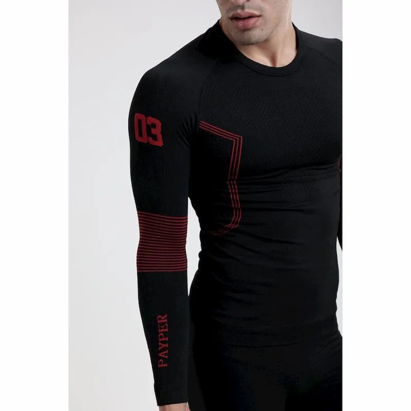 Camisola térmica de homem, decote redondo, mangas raglã compridas.