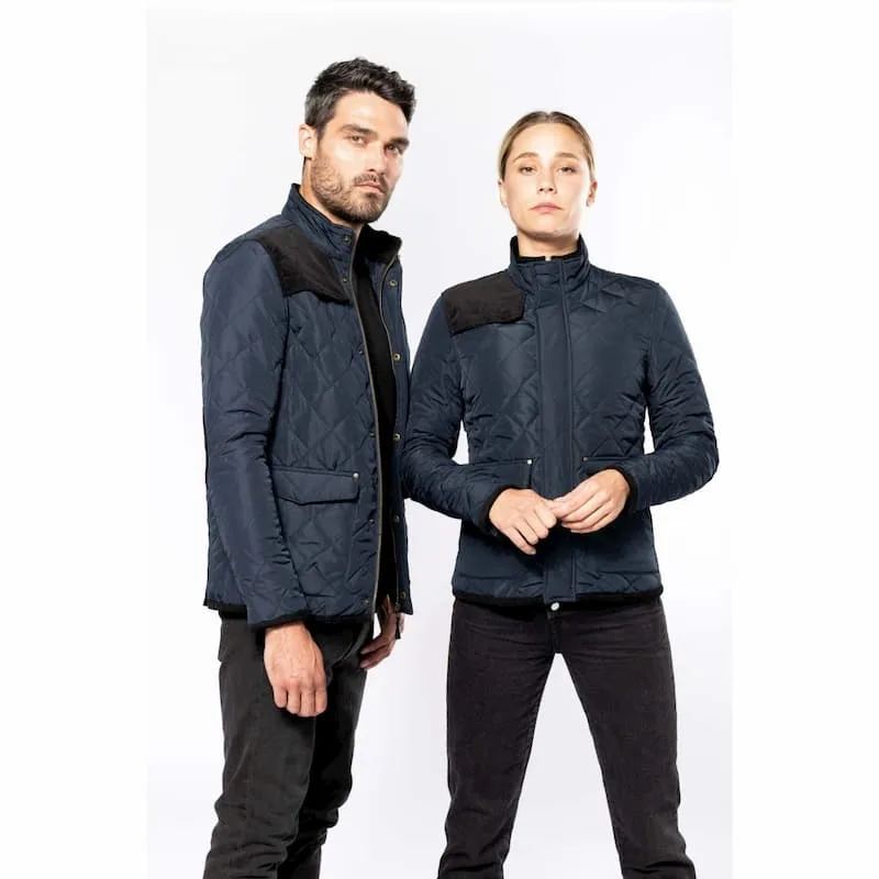 Acabamentos das mangas do cós, cotovelos, interior da gola e parte inferior da pala do bolso em veludo canelado.