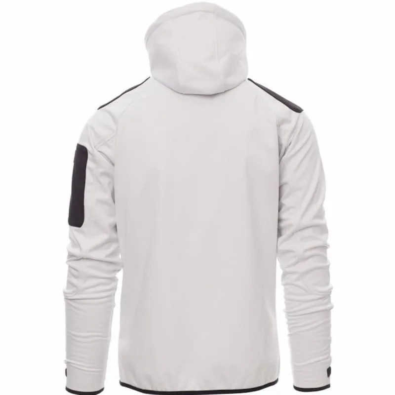 Casaco de ajuste confortável de homem com mangas raglã, capuz com costuras de ponto duplo e cordão, fecho de correr SBS com aba de proteção, punhos ajustáveis com fecho Velcro, punhos e bainha de bordas finas, dois bolsos laterais com fecho de correr, um bolso no peito e um bolso no braço esquerdo.