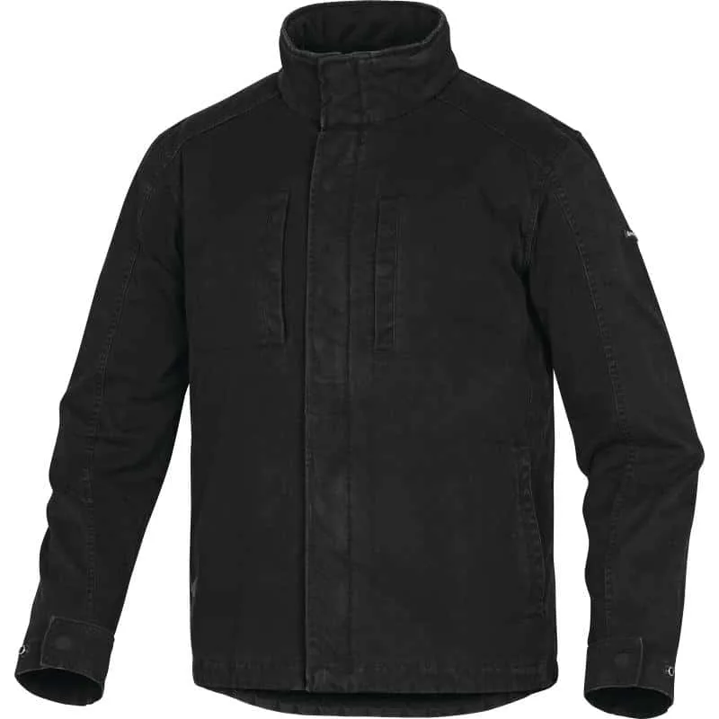 Fecho por zip anti-frio sob pala com botões de pressão.