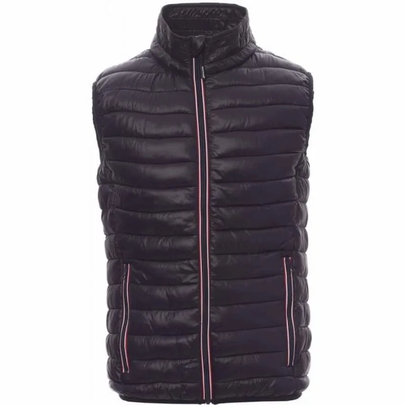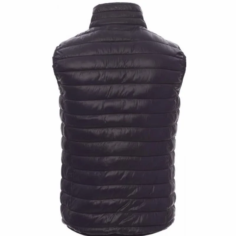 Colete acolchoado de homem, fecho de correr em nylon contrastante, punhos e bainha de borda fina, dois bolsos exteriores.
