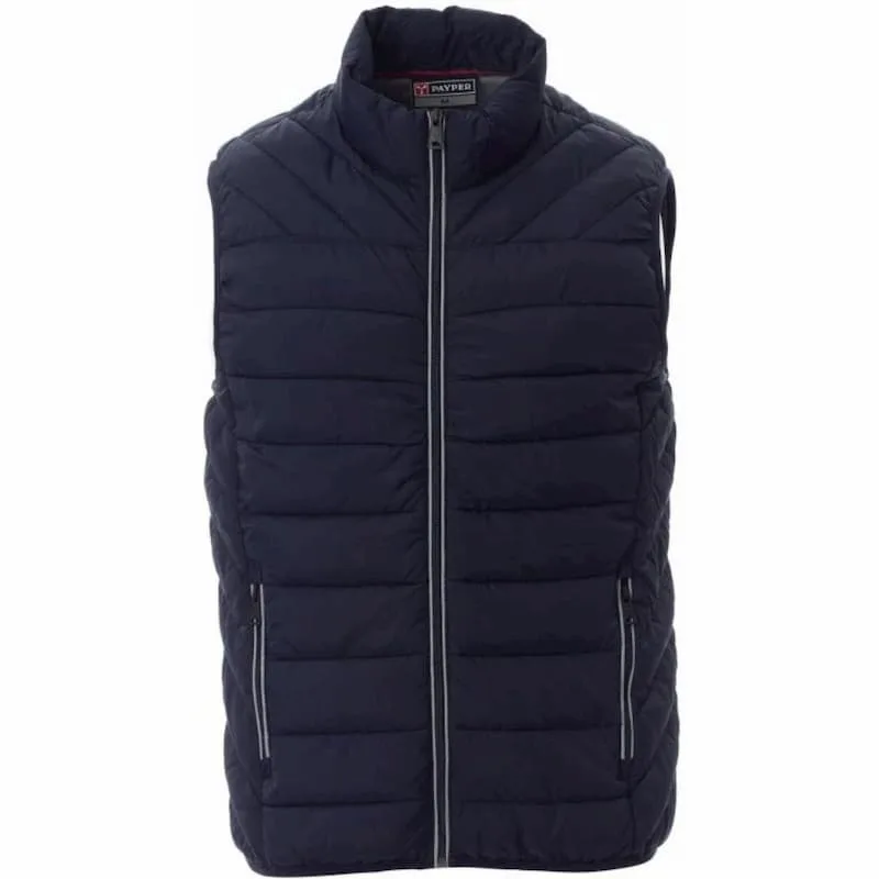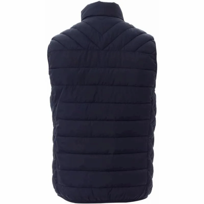 Colete acolchoado de homem, fecho de correr de 5 mm em plástico com cursor em metal, bainha de borda fina, dois bolsos externos.