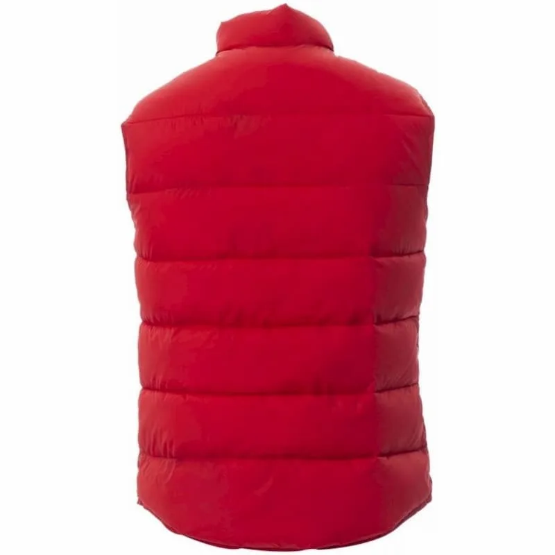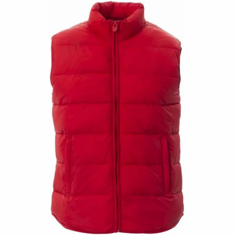 Colete de homem em poliéster acolchoado, efeito penas, fecho de correr de plástico oculto, dois bolsos exteriores com fechos de correr ocultos, interior em cores contrastantes.