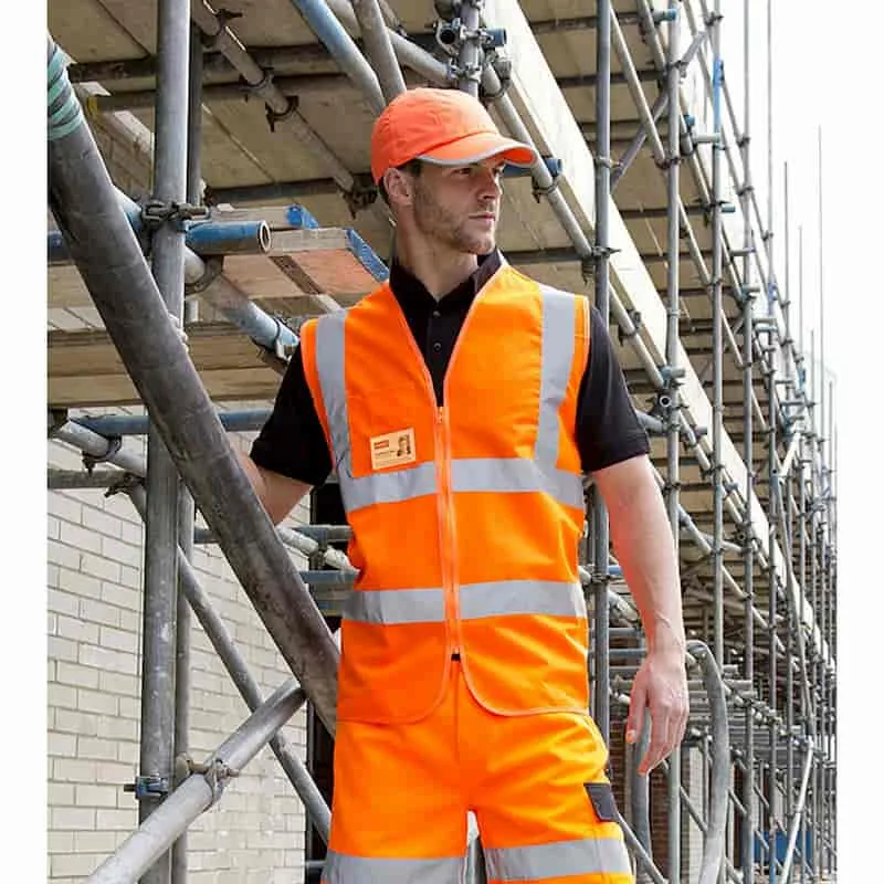 Duas faixas de segurança verticais nos ombros e duas faixas horizontais no corpo.