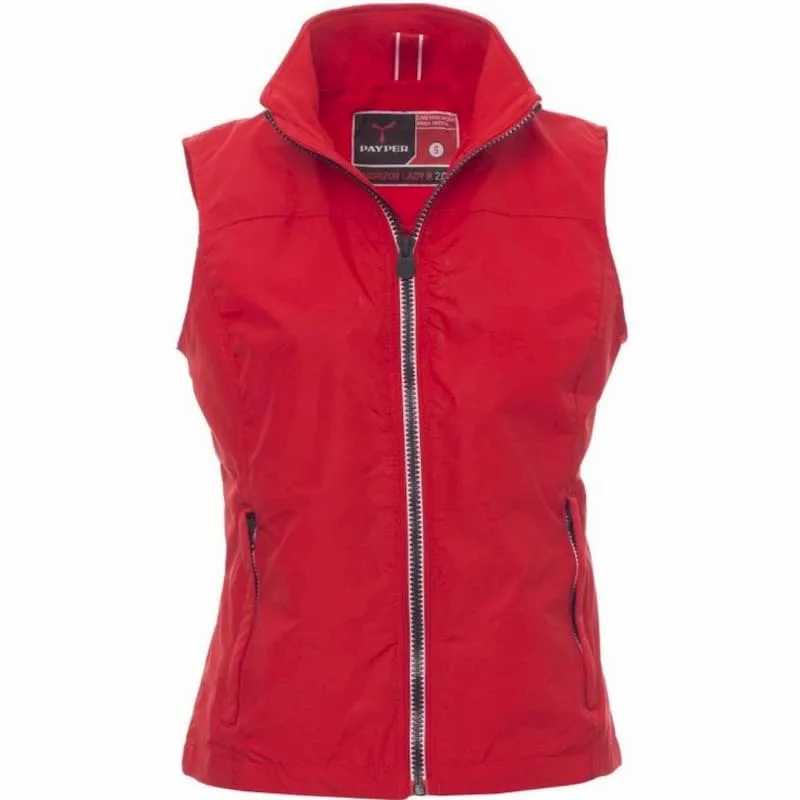 Colete de senhora de ajuste confortável, fecho de correr de 8 mm em contraste, dois bolsos exteriores com fecho de correr oculto.