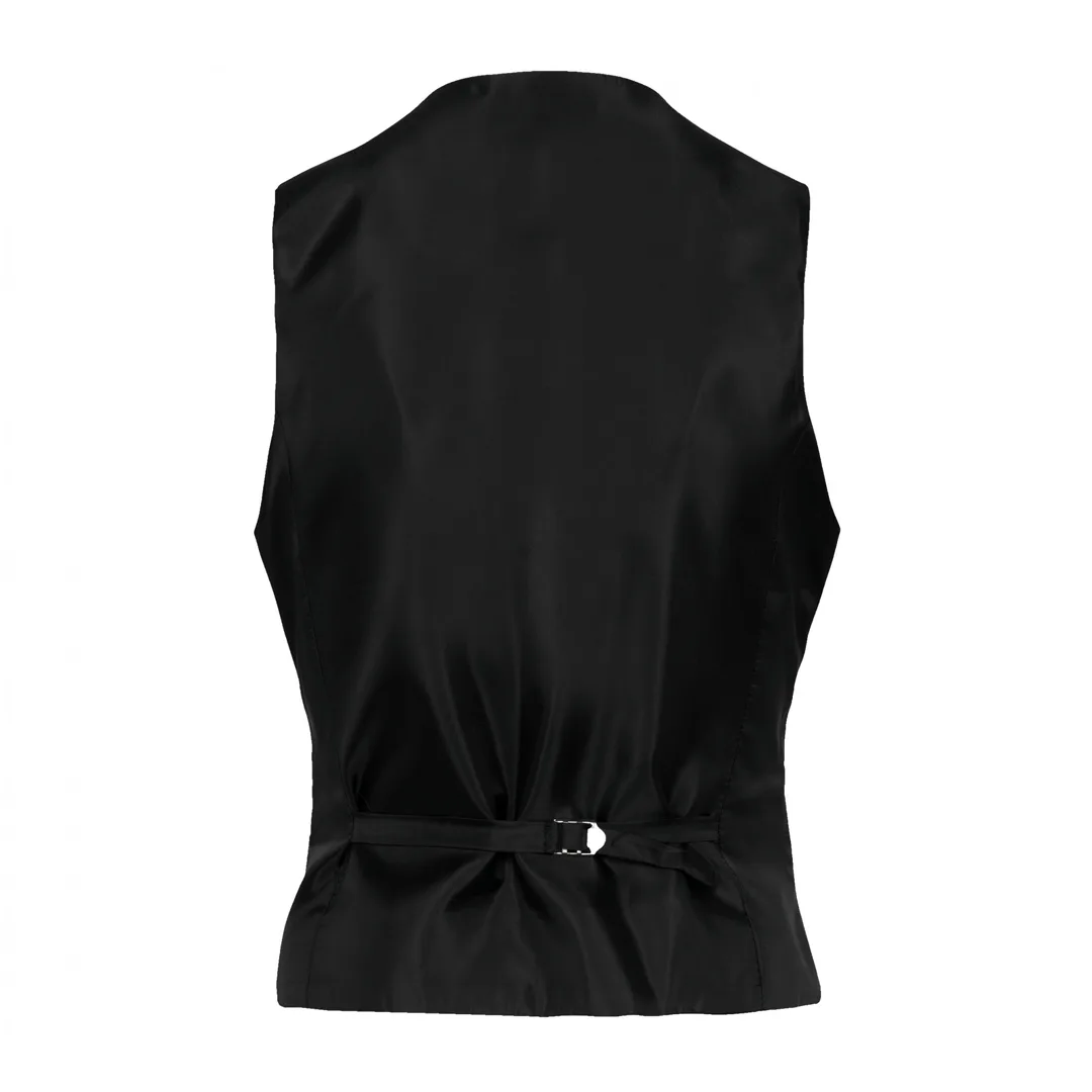 4% poliéster/34% viscose/2% elastano. Corte justo. Forro 100% poliéster taffeta. Fecha com 5 botões. 2 bolsos frontais pequenos. 2 aberturas laterais. Costas forradas. Presilha de ajuste nas costas com fivela de metal.