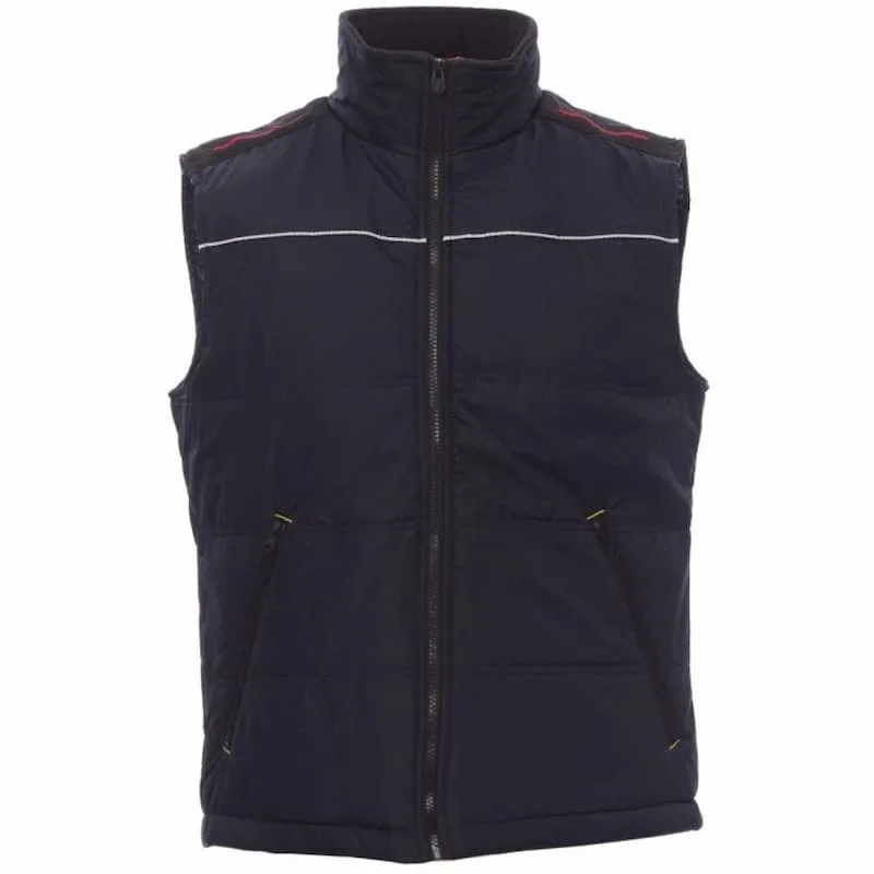 Colete UNISSEXO, com fecho de correr de 5 mm em plástico e cursor de metal, costas contornadas, dois bolsos externos espaçosos com fecho de correr, faixas refletoras no peito e nas costas. Interior acolchoado e com pesponto com forro de alta densidade, polar no interior do colarinho, um bolso.
