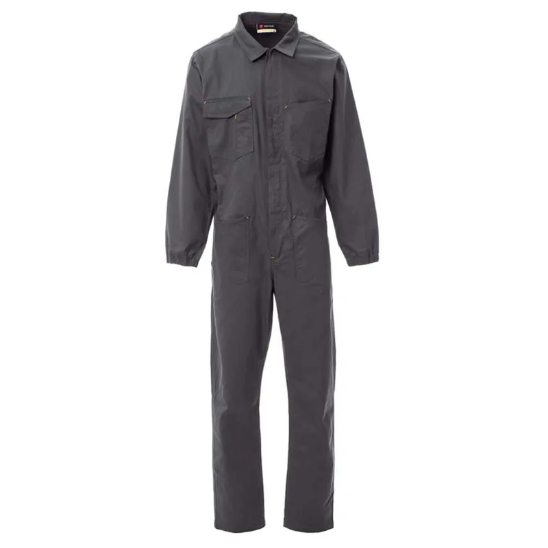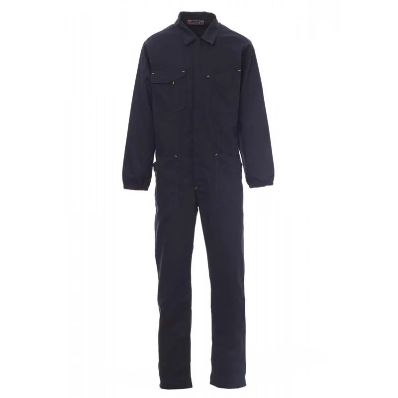 Macacão com zíper central duplo deslizante, punhos elásticos e cós interno traseiro.