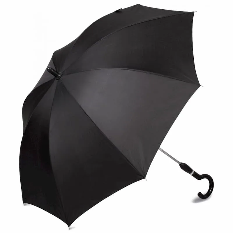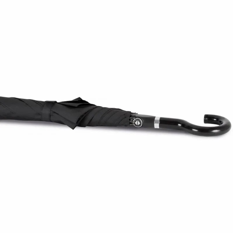 Chapéu de chuva com cabo deslizante 23′ (58,5 cm), abertura automática, cabo em metal, varetas e pontas das varetas em fibra de vidro, biqueira do chapéu de chuva antichoque.
