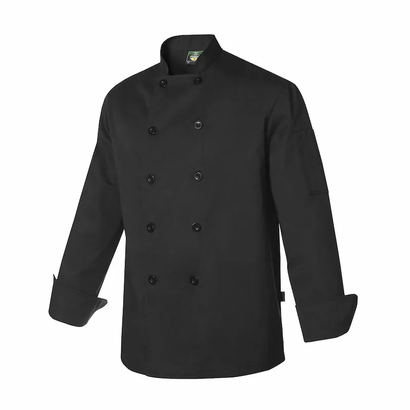 Jaleca Conforto Fit tipo cozinha americana. Com mangas compridas e gola mandarim. Macarrão trespassado.