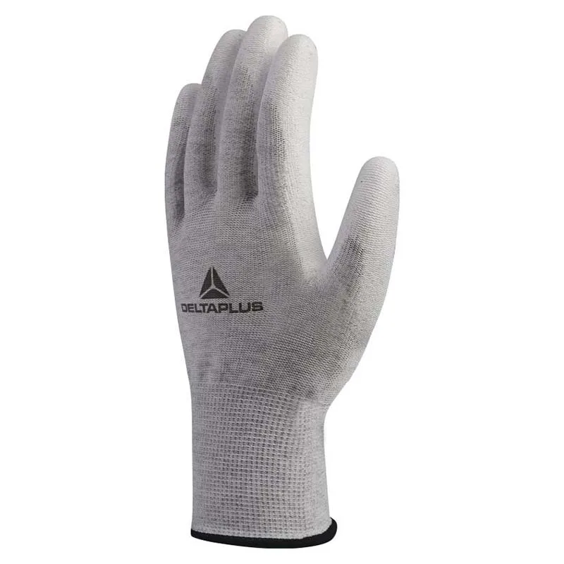 Poliéster carbono. Revestimento poliuretano na palma e ponta dos dedos. Agulha 13.
