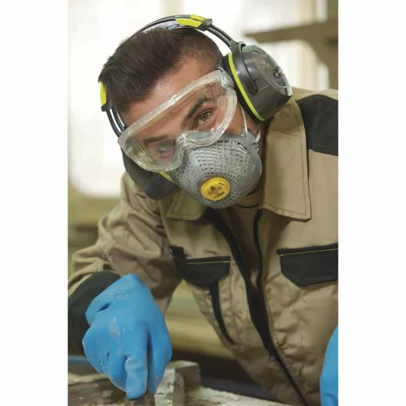 Peças faciais filtrantes contra os vapores orgânicos (para concentração < VME) em fibra sintética não tecido impregnada de carvão ativo.