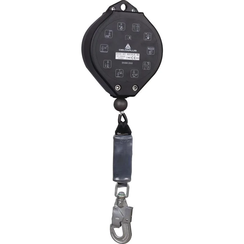 Anti-queda com curso de retorno automático em cabo galvanizado de 4 mm de Ø e dissipador de energia integrado.