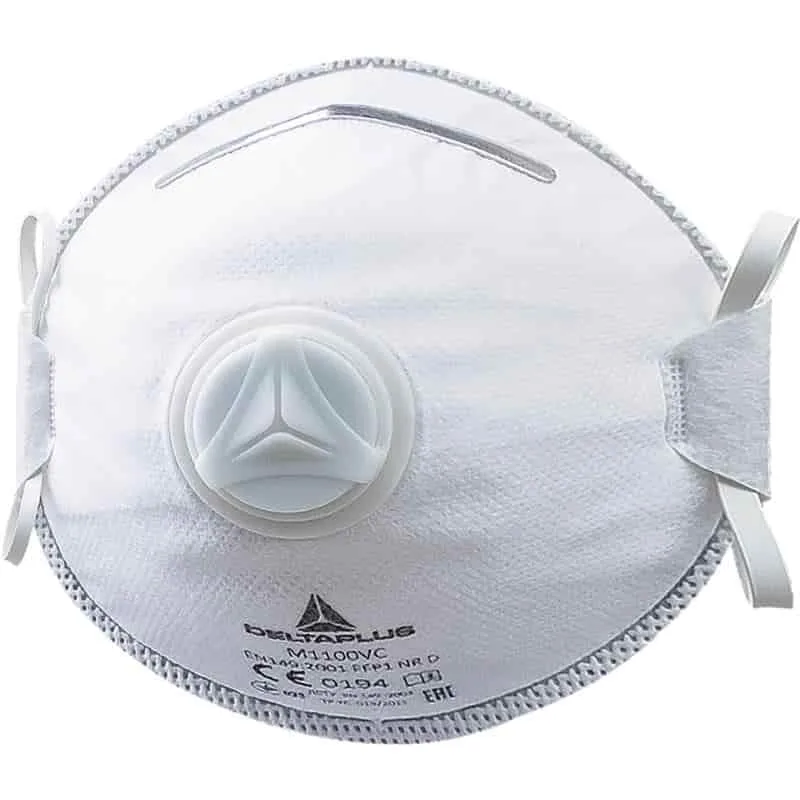 Caixa de 10 peças faciais filtrantes FFP1 em fibra sintética não tecido.