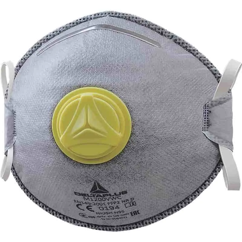 Caixa de 10 peças faciais filtrantes FFP2 vapor orgânico (para concentração < VME) em fibra sintética não tecido impregnada de carvão ativo.