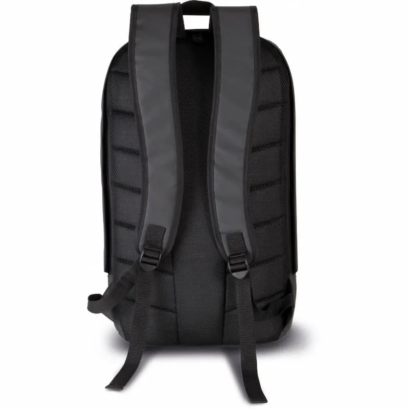 Mochila anti-roubo em poliéster 600D com revestimento repelente à água.