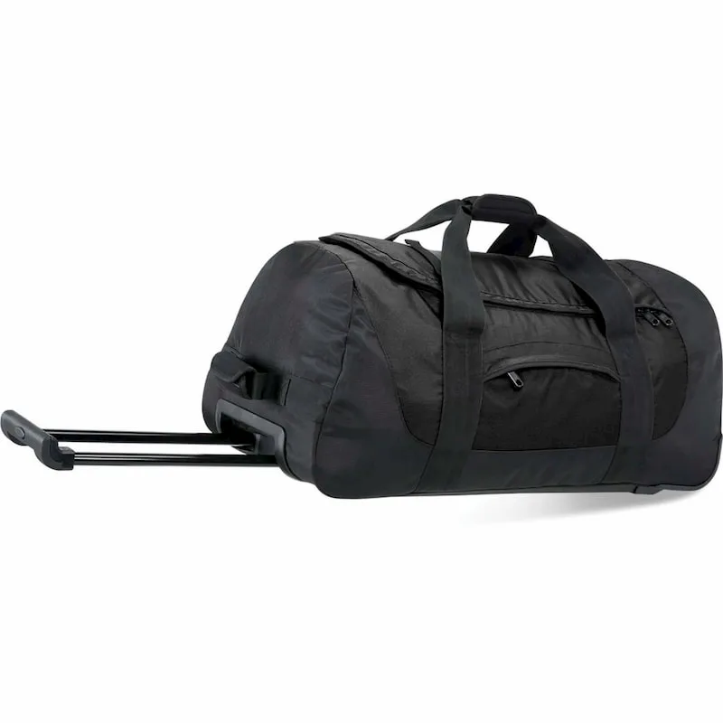 Poliéster 600D micro rip-stop, pega tubular dupla bloqueável e retráctil, pegas em malha, rodas integradas de alta resistência, alça a tiracolo amovível e ajustável com almofada para o ombro antiderrapante, fivelas de ajuste, correias interiores de ajuste, pega de transporte acolchoada em neopreno, pega de conforto acolchoada, espaço para o nome tapável, bolso frontal com fecho, bolsos interiores em malha em rede.