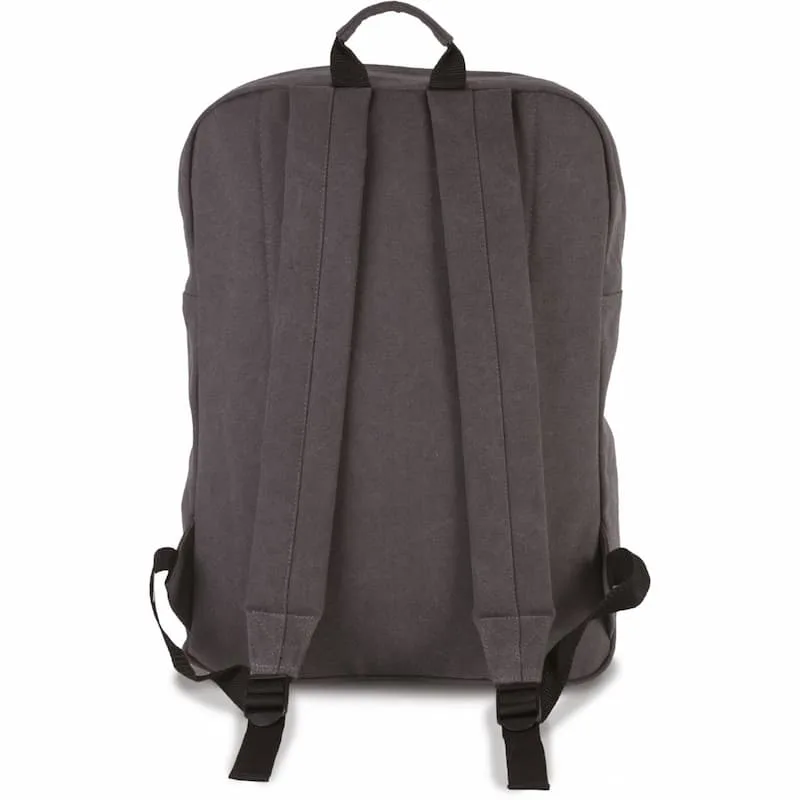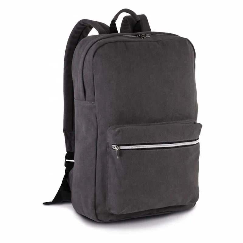 Mochila em algodão canvas com fechos em contraste metalizados.