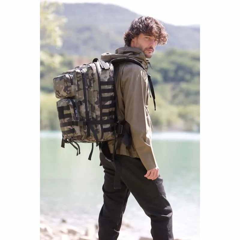 Ideal para atividades ao ar livre, a mochila tem bolsos para colocação de saco de água, assim como suporte para os tubos, um grande compartimento frontal, uma banda de velcro para ajuste, uma alça M.O.L.L.E., cintas para compressão assim como alças acolchoadas ergonômicas e ajustáveis.