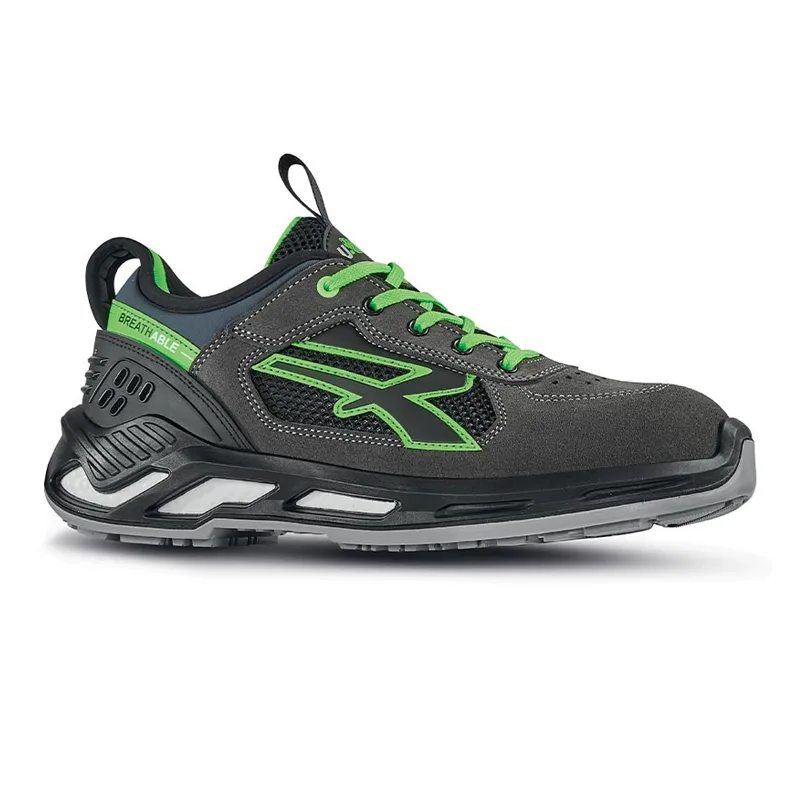 Calçado de segurança, leve e confortável U-Power da Red 360, com cabedal em nylon ultrarrespirável e camurça macia, gola em tecido de fibra Lycra®, protetor de choque no calcanhar, biqueira de alumínio, antifuro, antiderrapante e infinergy PU/PU , sola S1P SRC ESD