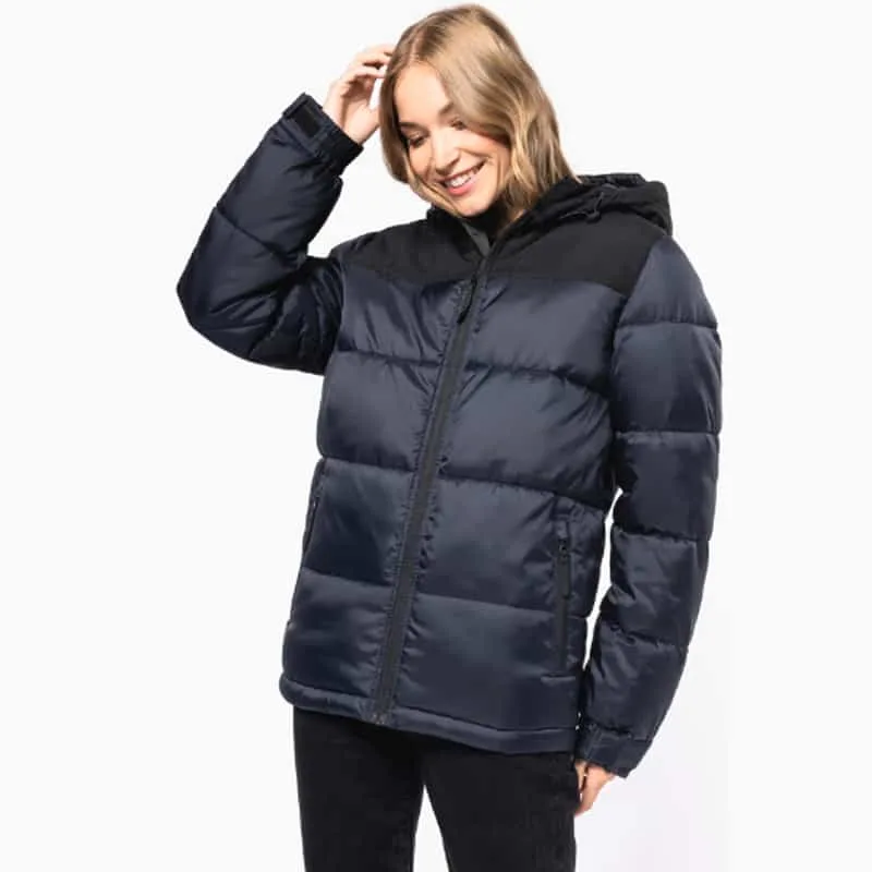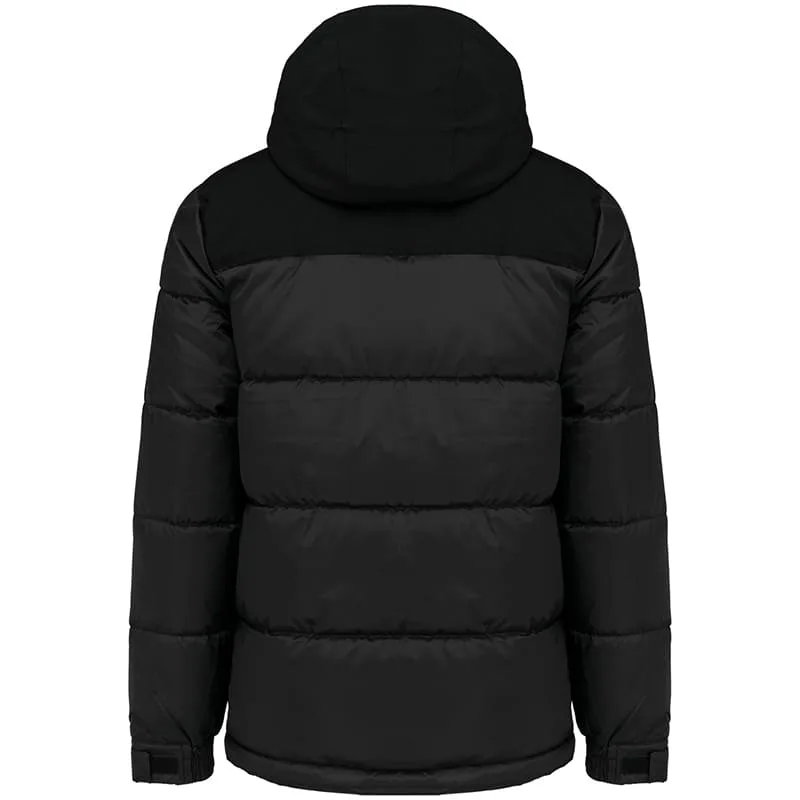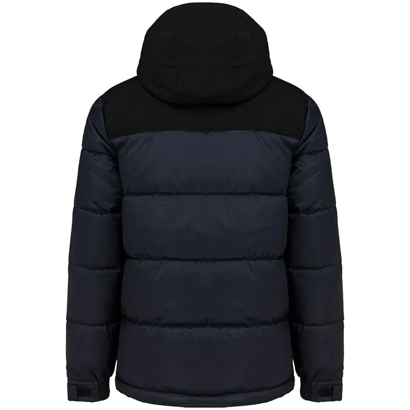 Bolso interior com velcro. Punhos elásticos com velcro. Bainha com cordão de ajuste e pullers nas laterais do cós.