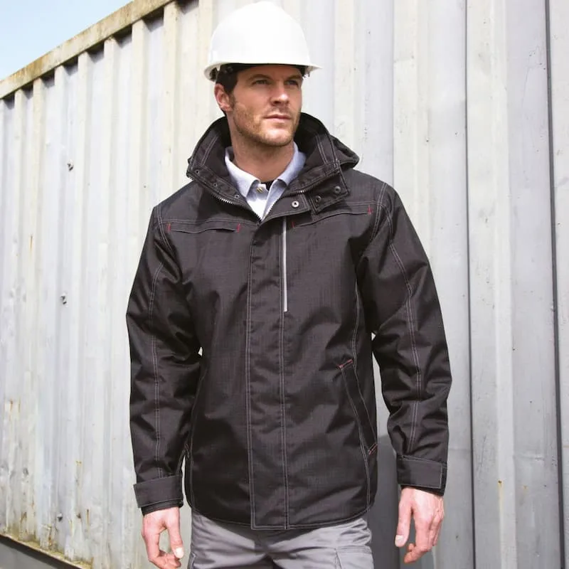 Parka corta-vento, impermeável 1500mm com costuras termo coladas e respirável 2000 g/m²/24h.