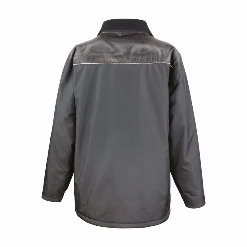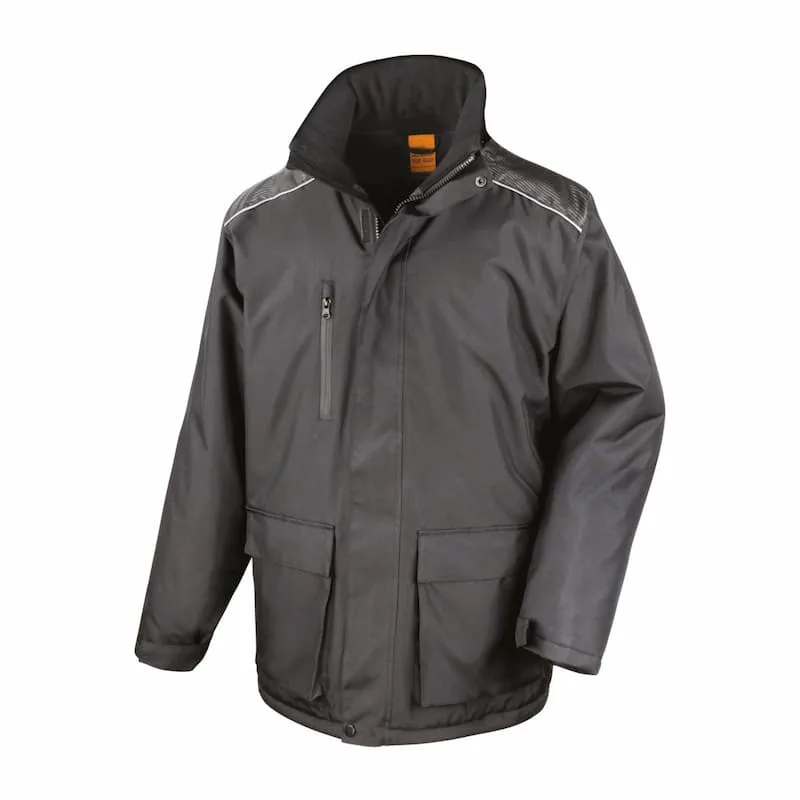 Multibolsos: bolsos cosidos na parte frontal com fecho em Velcro®, bolsos laterais para aquecer as mãos e bolso interior no peito.