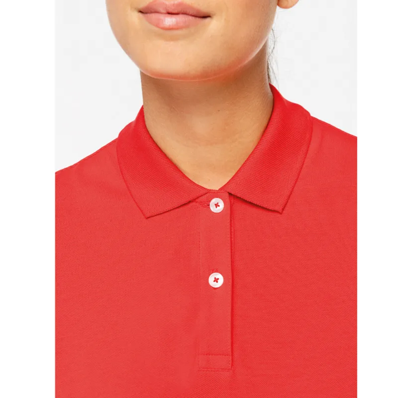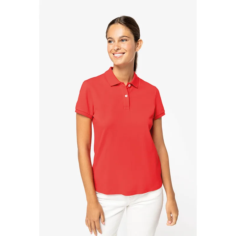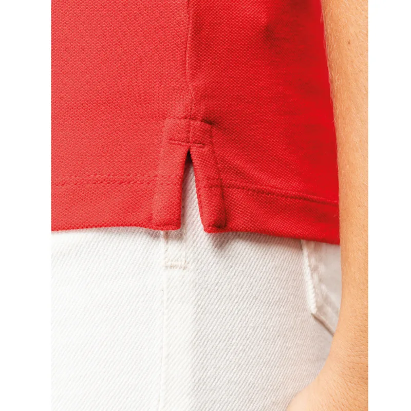 100% algodão biológico. Corte justo. Algodão penteado. Malha piqué. Com banho de enzimas. Aberturas laterais. Colarinho e acabamento das mangas em malha rib 1 x 1. Carcela com 2 botões com pesponto no acabamento. Botões em plástico reciclado em contraste com efeito nacarado. Tapa-costuras no material principal tom sobre tom no interior do colarinho. Reforço nos ombros no material principal. Acabamento costura dupla na bainha.
