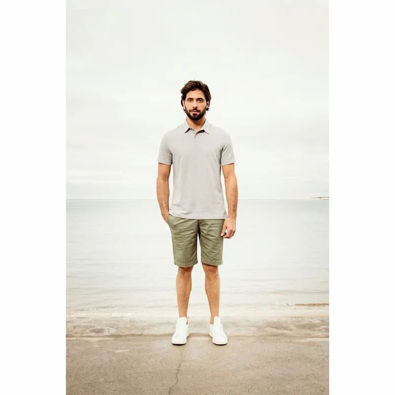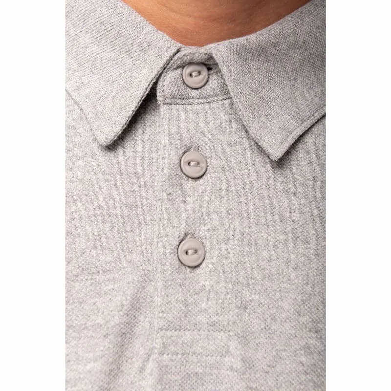 Este polo foi concebido a partir de 55% algodão reciclado e 45% poliéster reciclado.