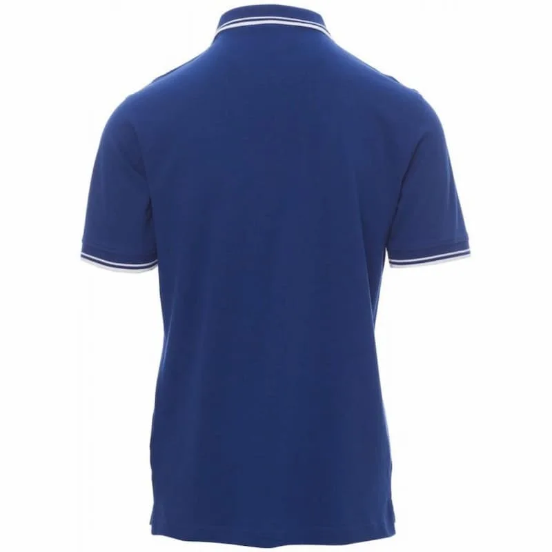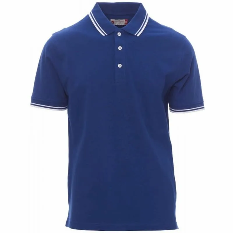 Camisa polo de manga curta de homem com 3 botões brancos, colarinho contrastante e adorno na manga, borda da manga e colarinho de canelado, respiradouros laterais com costuras reforçadas, costura do colarinho oculta, tira de reforço lateral, costuras elásticas, tira de gola interior.