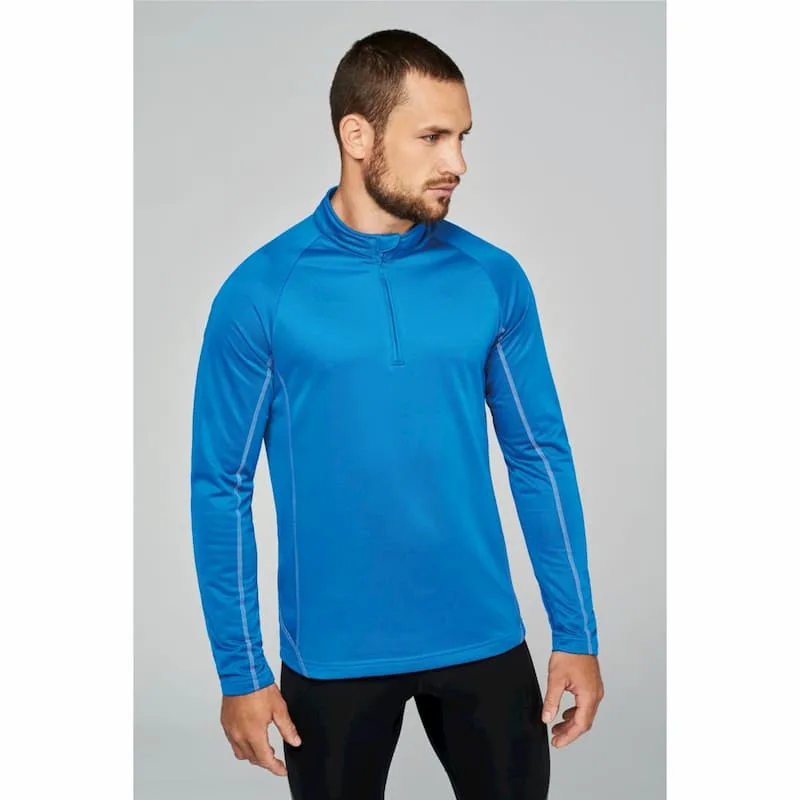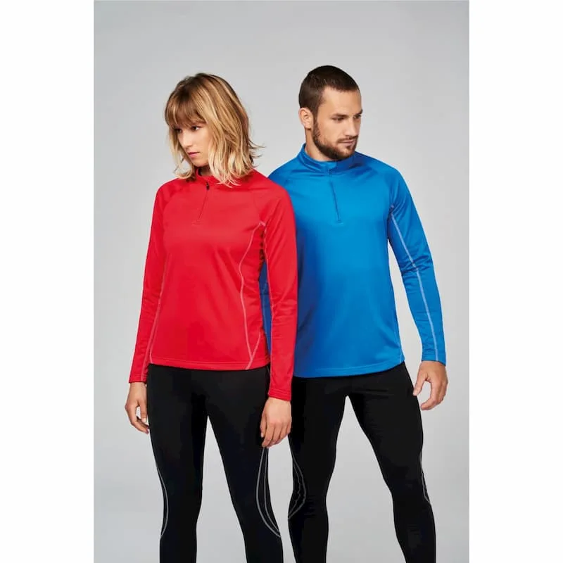 100 % poliéster tricot. Mangas raglan. Pespontos em contraste.