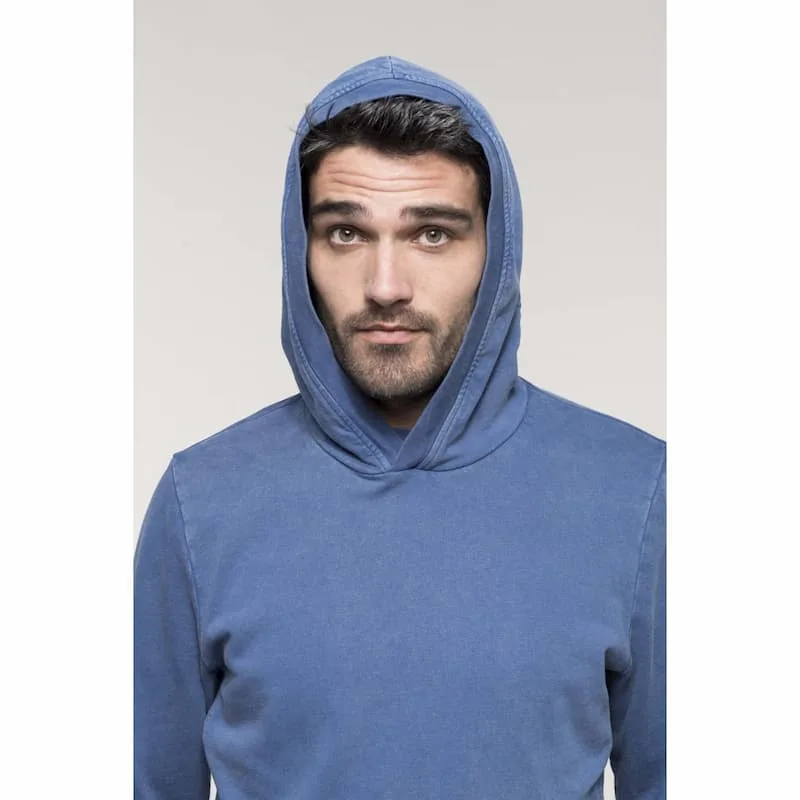 Interior não cardado “French Terry” com um tratamento especial para um aspecto “pré-lavado”.