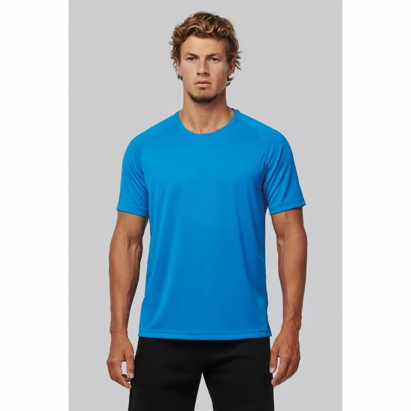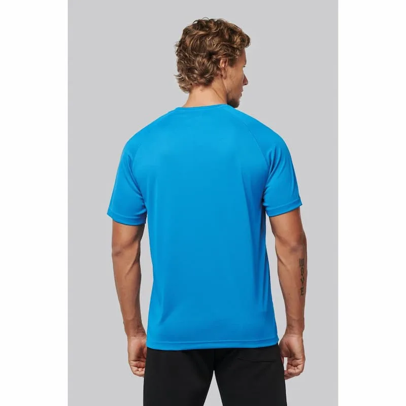 Corte direito e mangas raglan para facilitar a liberdade de movimentos.