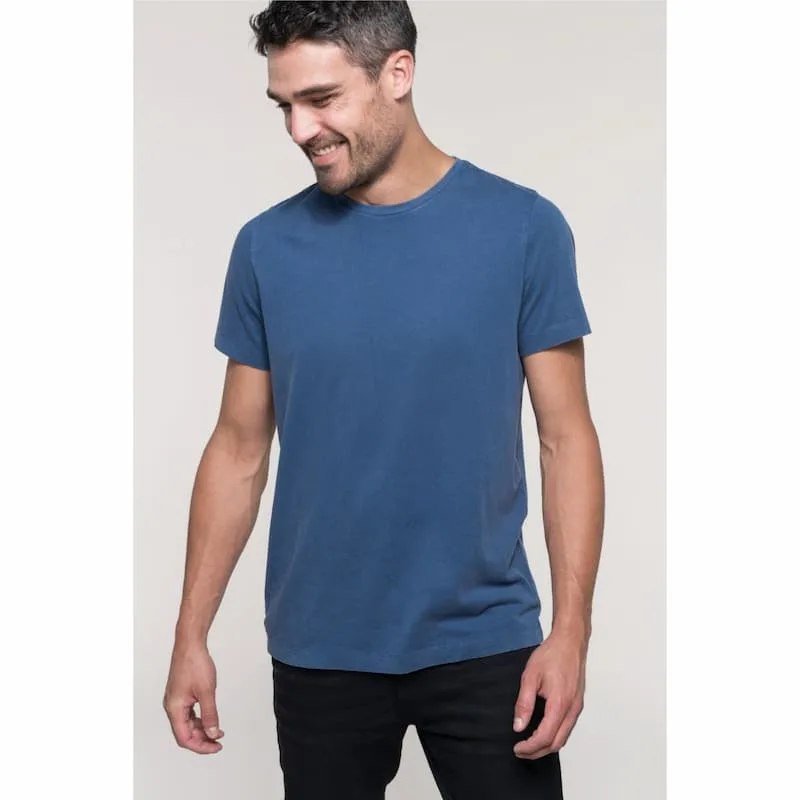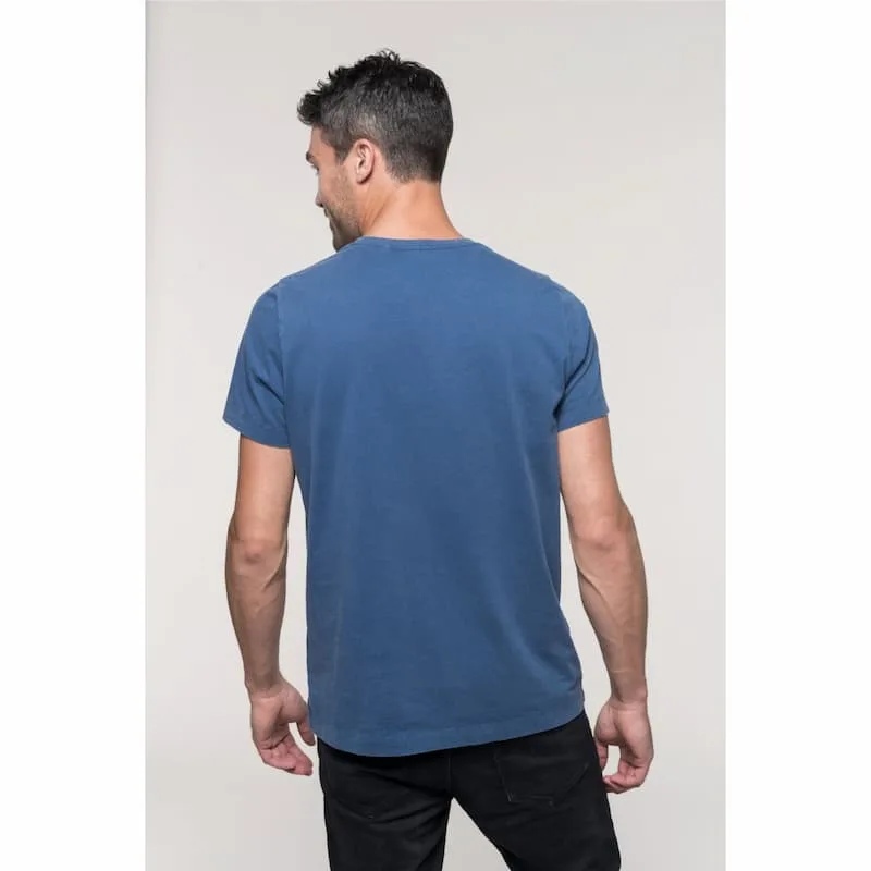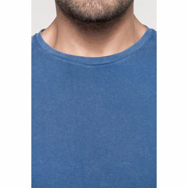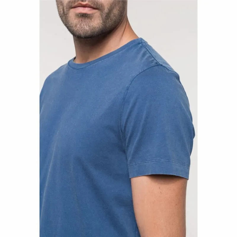 Tecido de malha jersey com um tratamento especial para um aspeto “pré-lavado”.