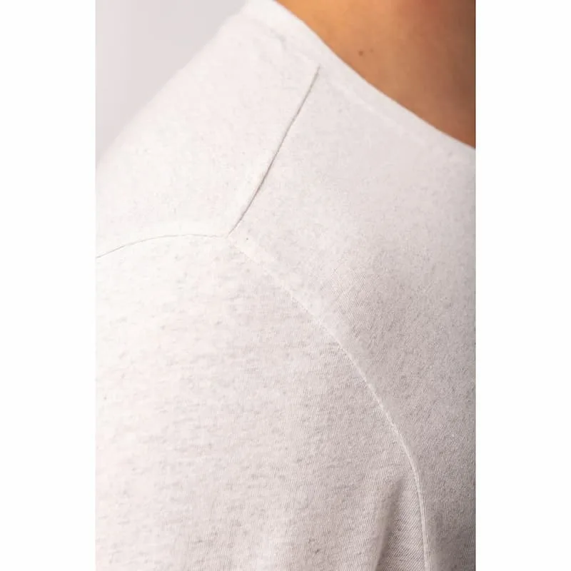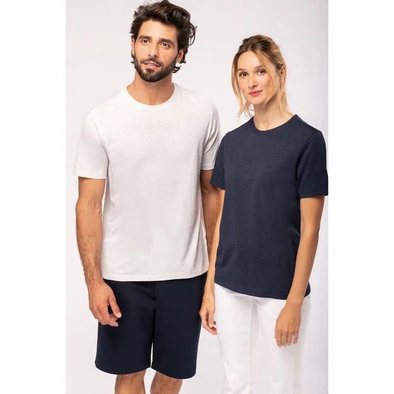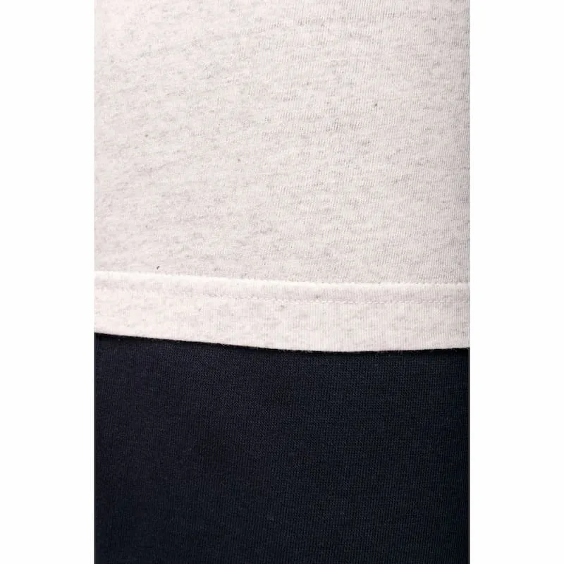 O certificado GRS (Global Recycled Standard) é emitido por Ecocert Greenlife. Unissexo. Corte direito. Etiqueta de tamanho com logótipo de algodão reciclado e poliéster reciclado. Lavado com banho de enzimas. Decote redondo com acabamento em malha rib 1×1, pesponto simples no decote. Pespontos duplos no acabamento do cós e da manga. Acabamento tubular do cós e da manga. Tapa costuras interior no decote nas costas em contraste em jersey. Os produtos compostos por materiais reciclados podem apresentar pequenas variações em termos da composição e da cor. Peça fornecida sem etiqueta de marca no decote, contendo apenas etiqueta de tamanho para facilitar a personalização.