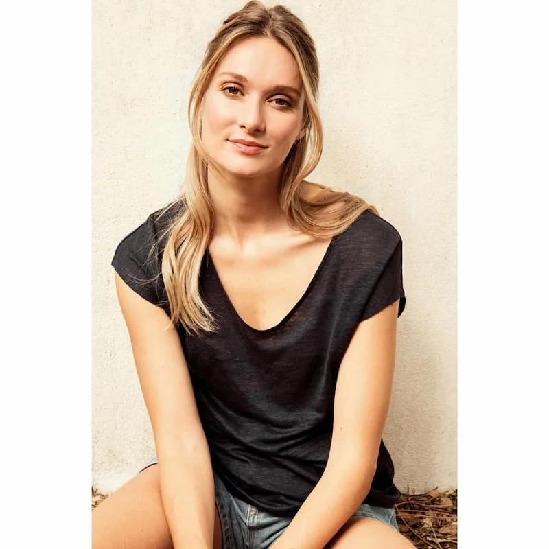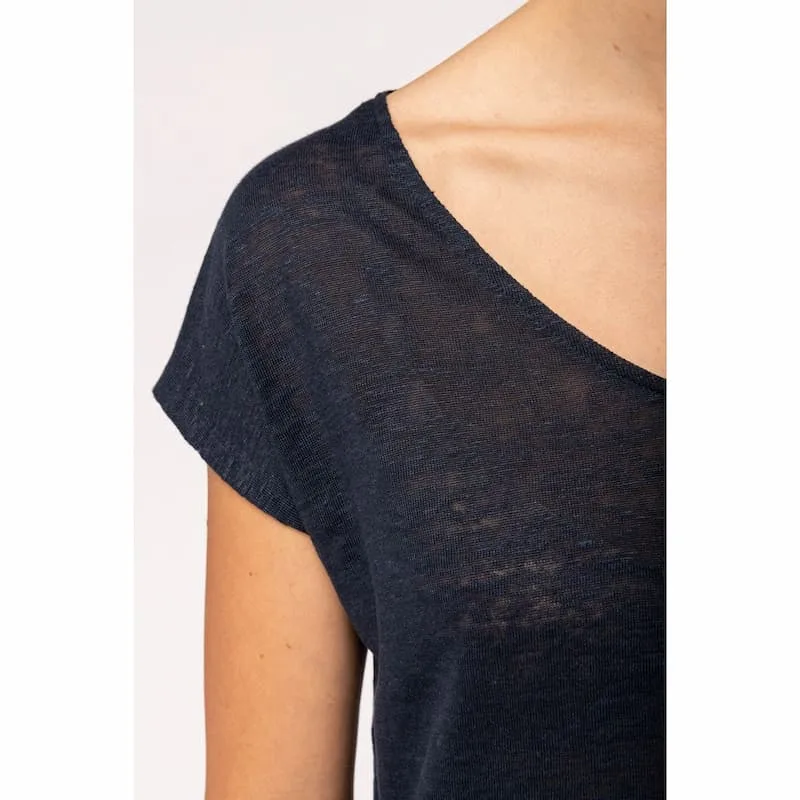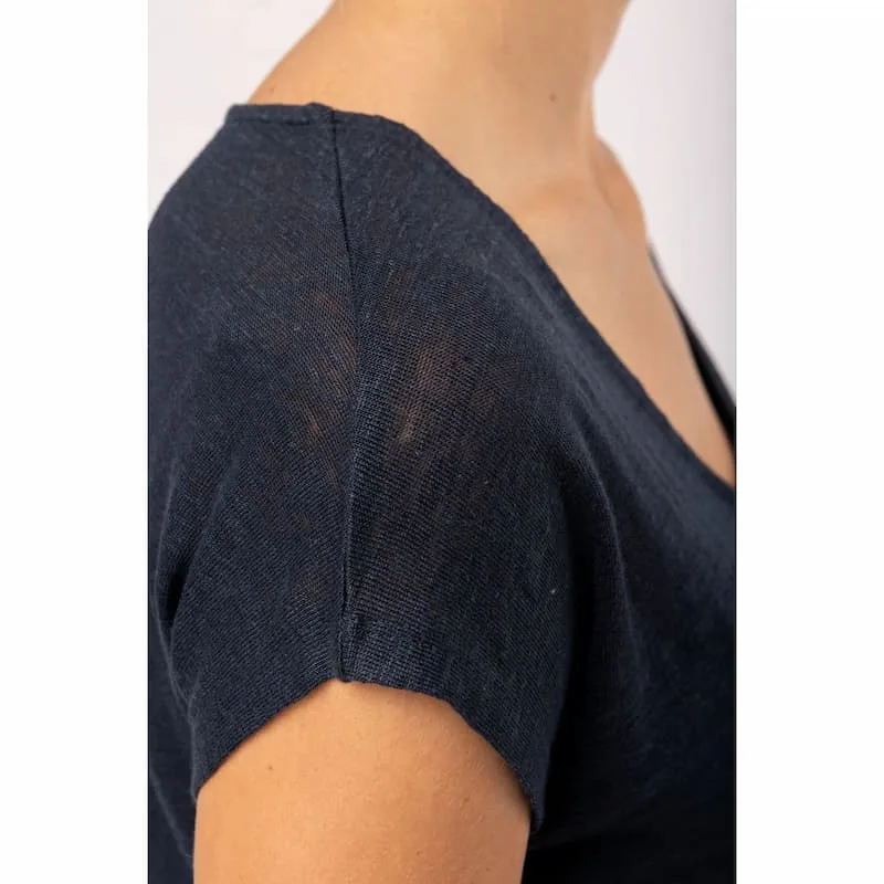 100% linho. Calibre 20. Corte direito com acabamento tubular do cós e da manga. Tapa costuras interior no decote nas costas. Decote no tecido principal. Pespontos duplos no acabamento do cós e da manga. Decote em «V». Fita em cetim nos ombros para pendurar no cabide. Peça fornecida sem etiqueta de marca no decote, contendo apenas etiqueta de tamanho para facilitar a personalização.