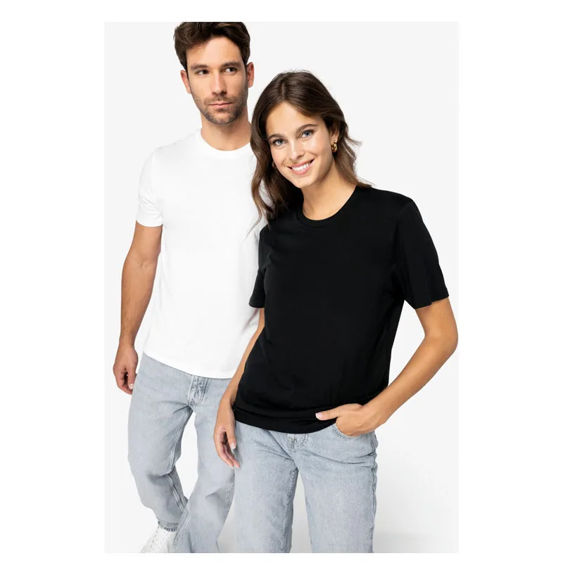 Esta t-shirt foi concebida a partir de 100% algodão biológico. Algodão ring spun penteado.