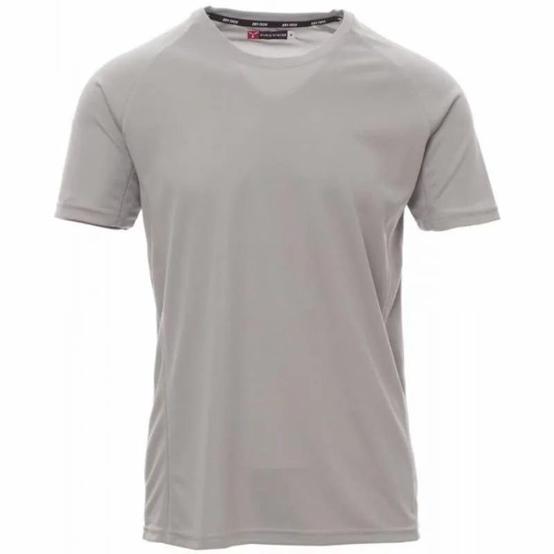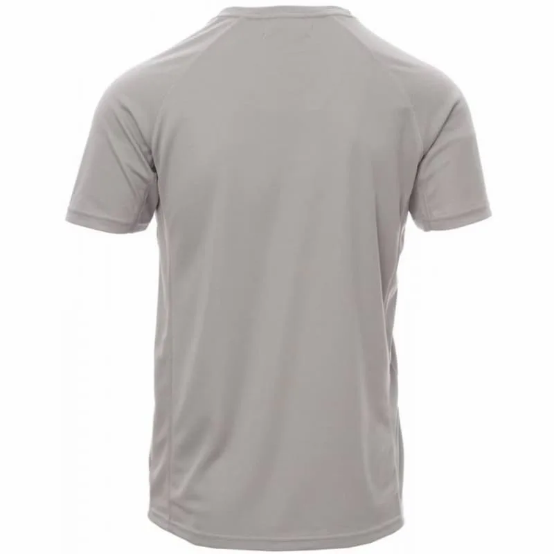 T-shirt técnica-desportiva de homem com mangas raglã, costuras laterais duplas para um ajuste mais confortável, com aba de proteção na gola.