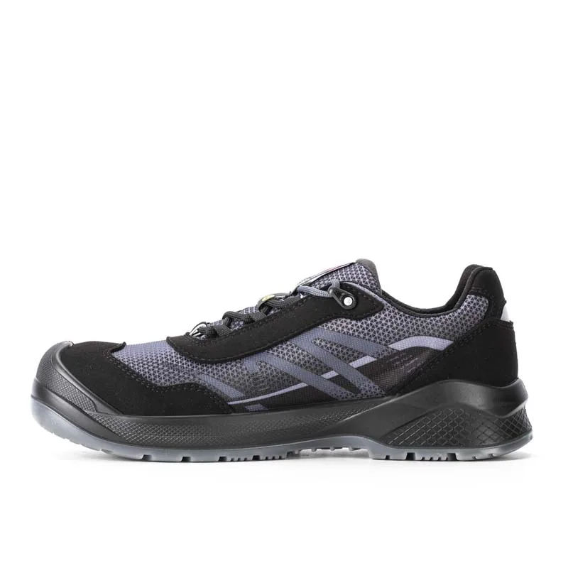Solado, solado e entressola em PU bidensidade com composto ESD. Para uso em contato com equipamentos eletrônicos sensíveis. Leve e confortável, muito versátil. Alta resistência ao deslizamento. SRC Antislip Standard.