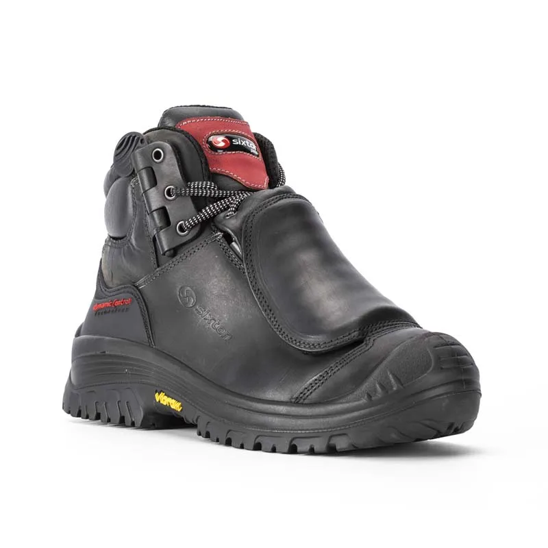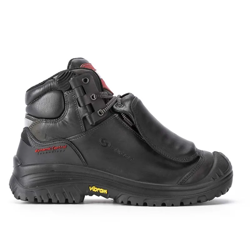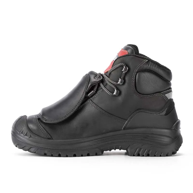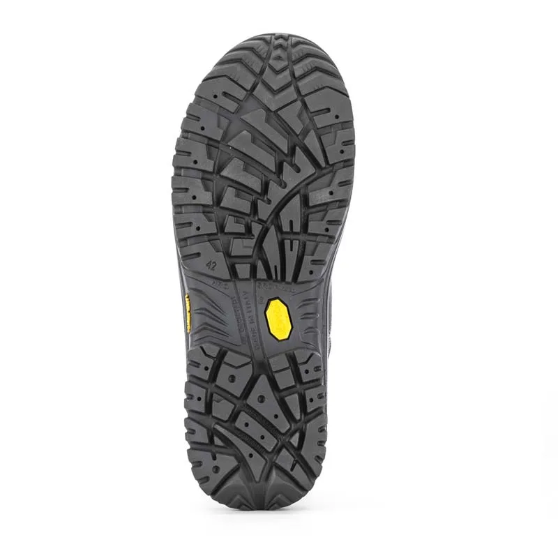 Sola com gorro antidesgaste. Solado em borracha VIBRAM, resistente a 300° C por contato (HRO), a ácidos e óleos. Design com solado autolimpante, com padrão Antiderrapante.