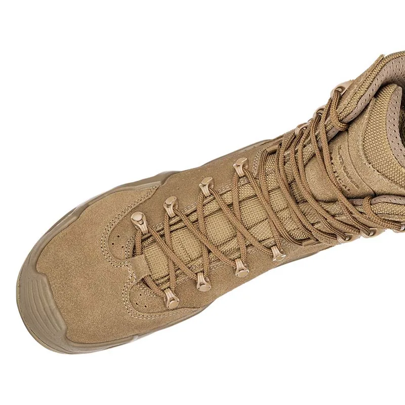 Bota tática Z-8S C está certificado para cumprir com os regulamentos da UE em matéria de EPI e possui a sola exterior LOWA® TACTICAL Z TRAC® que cumpre a norma SRA de resistência ao escorregamento. É uma palmilha multi-funções de 8″ de alta resistência, concebida para missões exigentes em condições quentes e secas, ao mesmo tempo que transporta grandes pacotes em terrenos variados, e combina o conforto de caminhar com total apoio e protecção, além de oferecer um arco resistente à abrasão